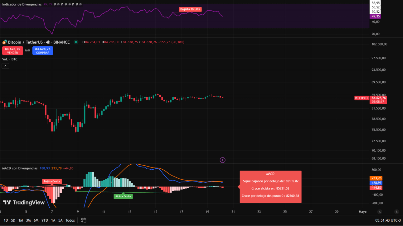 🗣️Resumen de lo esperado hoy: El movimiento es cada vez más lineal, las subidas y bajadas se acortan, formando casi una línea lateral que podría explotar en cualquier momento. Aún no tenemos una señal clara de hacia dónde se dará ese movimiento fuerte, pero la opción más probable es una bajada hasta los 80.000 $. Sin embargo, no podemos confirmarla hasta que se rompa nuestro soporte principal.