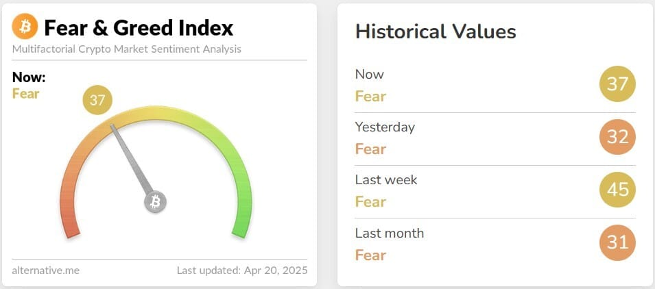 💜 Sentimiento de mercado: El miedo se recupero un poco mas, ahora estamos en los 37 puntos.