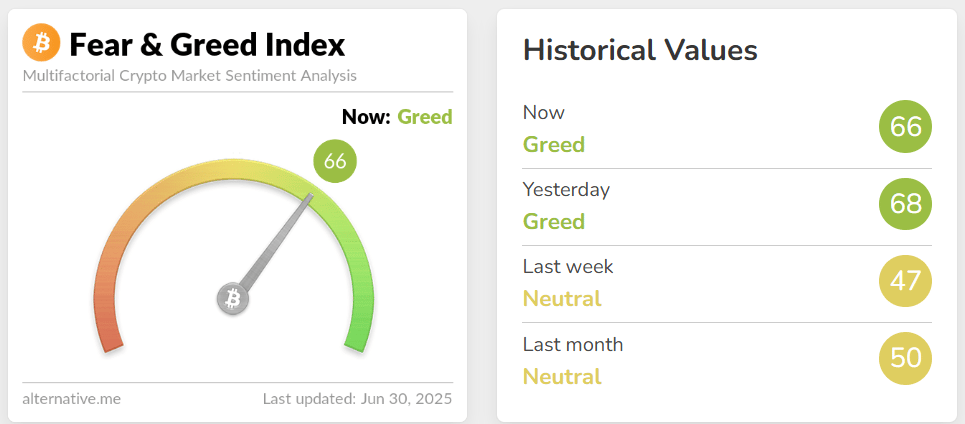 💜 Sentimiento de mercado: Ahora estamos en 66 de avaricia.