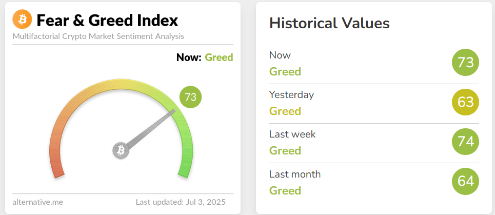 💜Miedo y codicia del mercado: 73 puntos (Avaricia)
