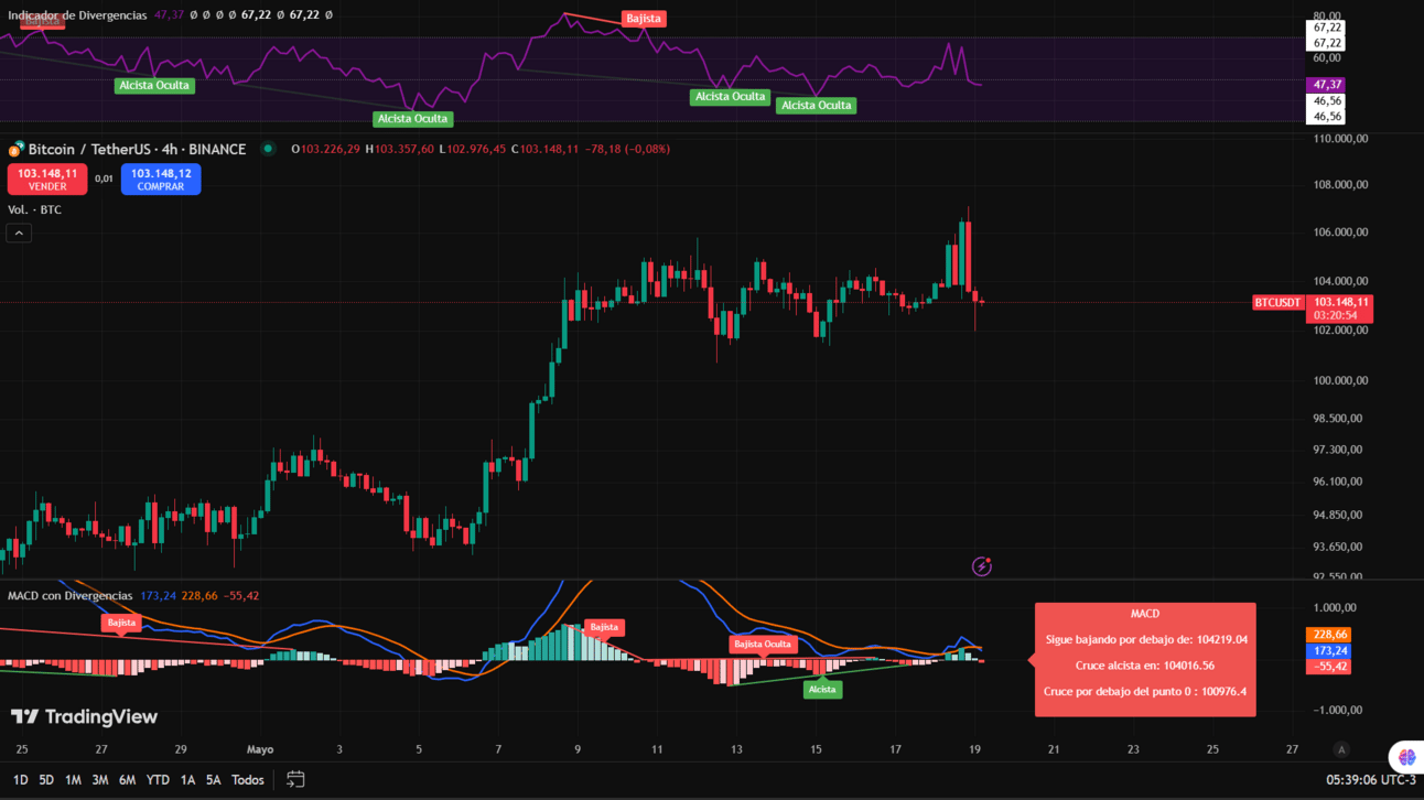 El soporte principal sigue siendo la zona de los 101.700 $. Si el precio logra romper este nivel en los próximos días, podríamos ver una corrección más clara, con objetivos en torno a los 99.000 $ o incluso los 98.000 $.