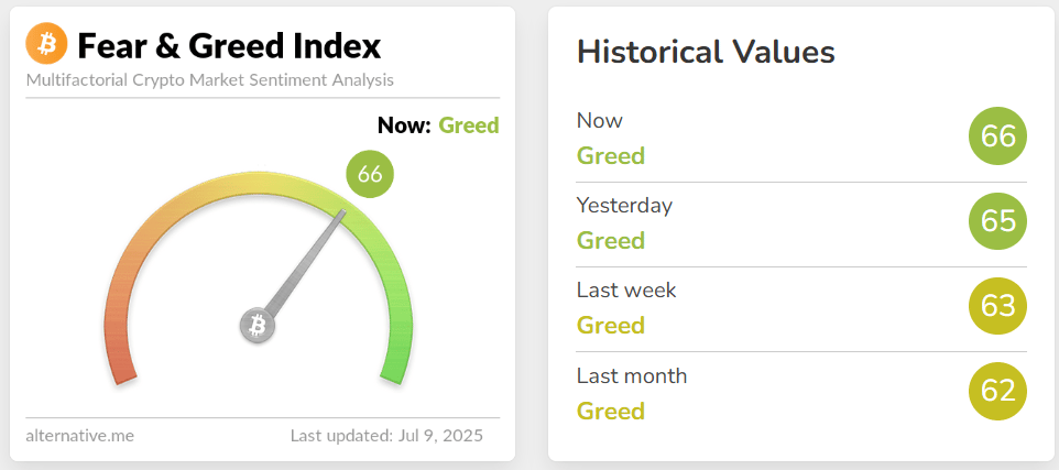 💜 Sentimiento de mercado: Nos encontramos en 66 de avaricia.
