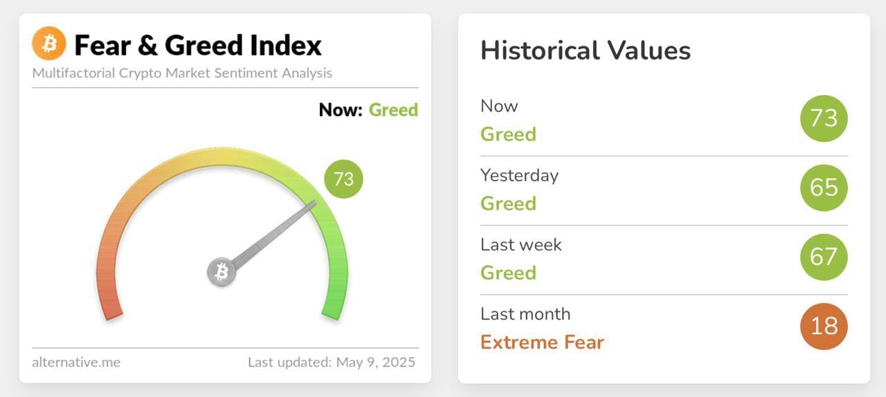 💜 Sentimiento de mercado: La avaricia volvio a subir y ahora se encuentra en 73 puntos.