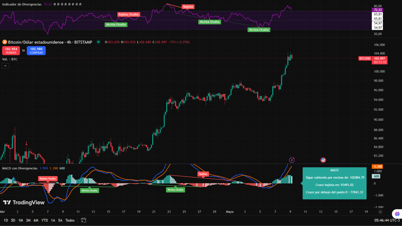 En cuanto a resistencias, los 105.000 $ se presentan como una zona crítica. Este nivel actuó como una fuerte resistencia a inicios de año, por lo que podría representar un obstáculo importante en esta fase del movimiento.