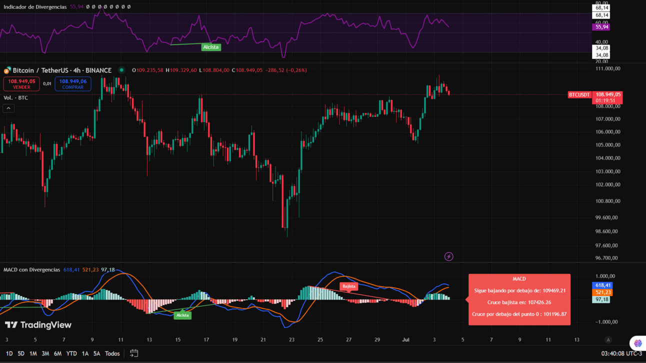 🗣️ Resumen de lo esperado hoy: Bitcoin rebotó con fuerza tras alcanzar un mínimo intradía de 108 845 $, y ahora cotiza cerca de 108 960 $, recuperando parte del terreno perdido tras la caída del día anterior. El repunte aparece en un entorno de menor tensión geopolítica en Oriente Medio y un dólar debilitado, lo que favorece el apetito por activos de riesgo como BTC .
