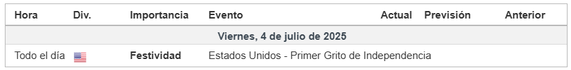 📅Calendario Económico de Investing: Hoy es un dia festivo en EEUU, por lo que no hay noticias.