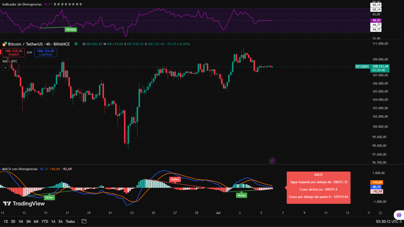 La clave para las próximas sesiones será ver si los compradores pueden defender el soporte en 107.340 $ y superar con volumen la resistencia en 109.140 $. La atención también estará puesta en eventos macroeconómicos como el próximo informe de empleo en EE. UU. que podría impactar la liquidez y riesgo global.