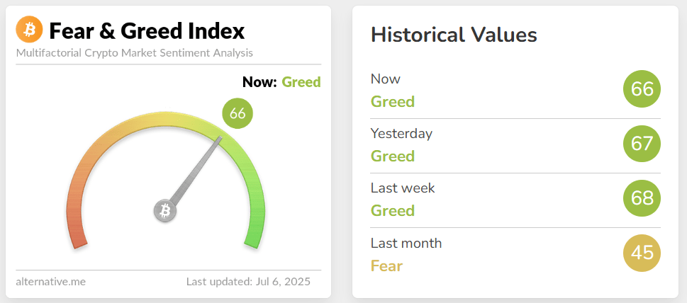💜 Sentimiento de mercado: Nos encontramos en 66 de avaricia..
