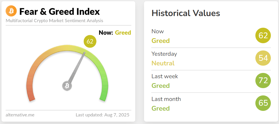 💜Miedo y codicia del mercado: 62 puntos (Avaricia)