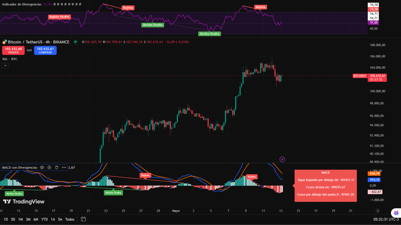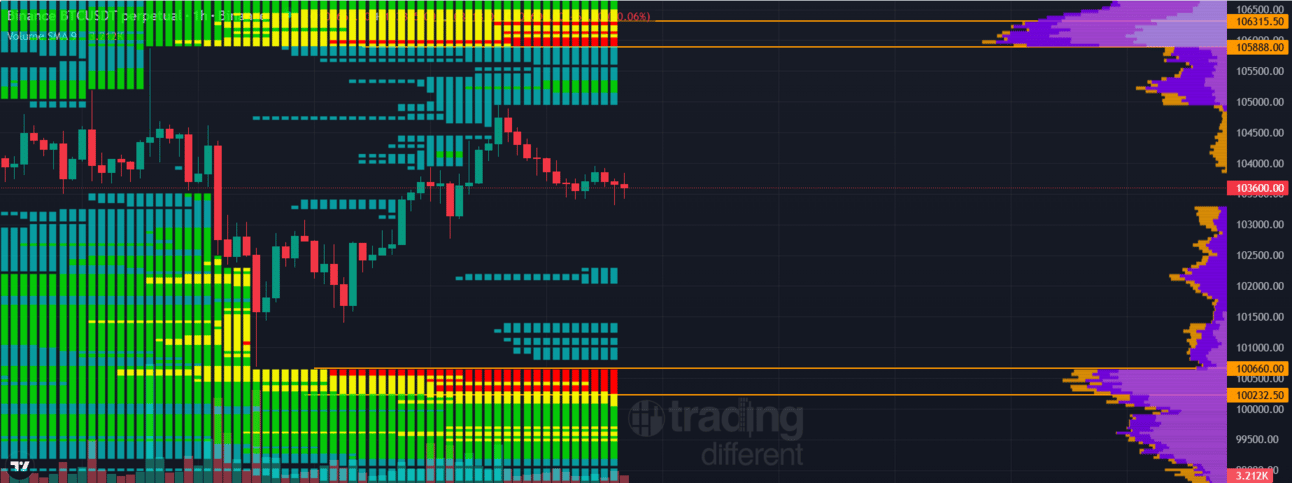 El soporte principal sigue siendo la zona de los 101.200 $. A pesar de haber sido testeado, no fue perforado, lo que indica cierta fortaleza en el movimiento alcista. Por debajo, la siguiente zona de soporte se encuentra en los 99.000 $.
