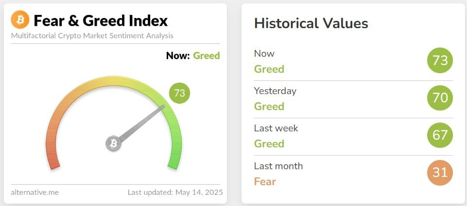 💜 Sentimiento de mercado: La avaricia subio 3 puntos y se encuentra en 73 puntos.