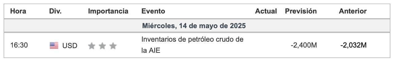 📅Calendario Económico de Investing: En el calendario solo tenemos una noticia relevante para el dia de hoy: