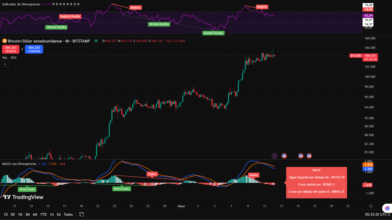 En cuanto a resistencias, los 105.000 $ siguen siendo una zona crítica. Este nivel funcionó como resistencia fuerte a inicios de año y podría volver a representar un obstáculo relevante en esta etapa del movimiento.
