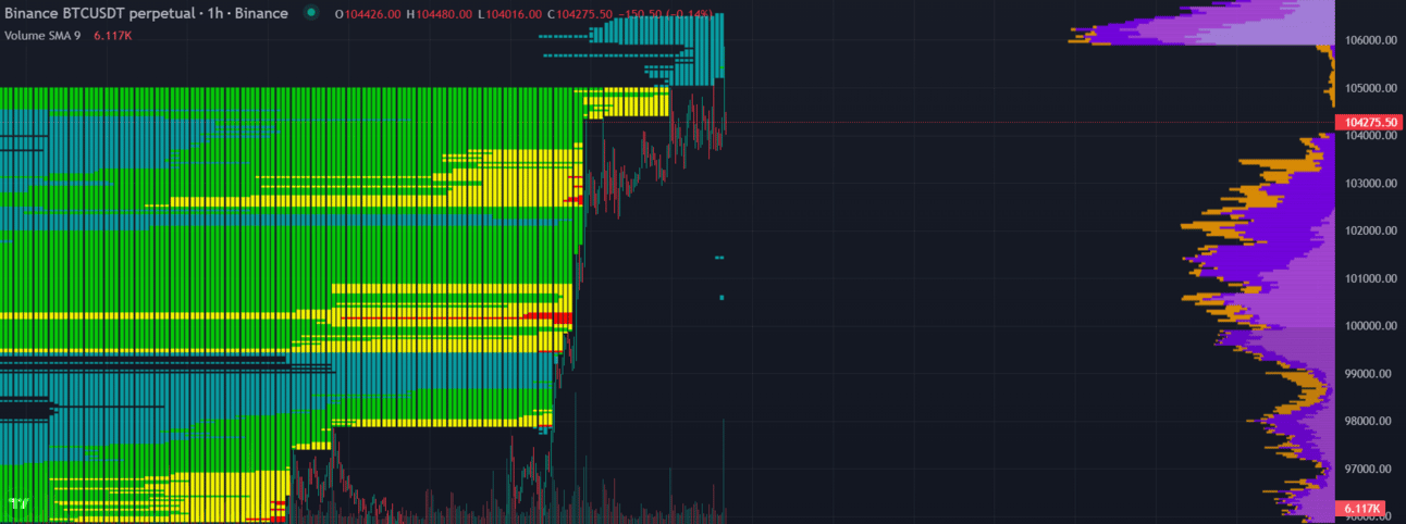 📈Mapa de Liquidaciones: En cuanto al mapa de liquidaciones, por debajo seguimos sin tener nada importante a corto plazo, actualmente estamos sin vista clara de liquidaciones para tomar, al menos en grafico de una hora.