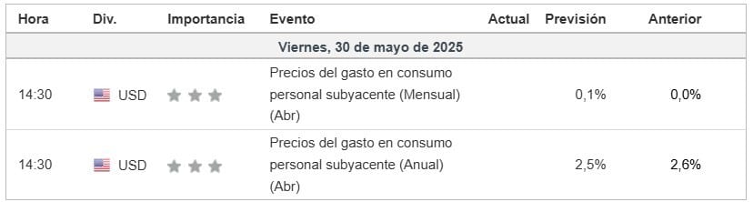 Los datos del Índice de Precios del Gasto en Consumo Personal (PCE), tanto mensual como anual, son indicadores clave de inflación seguidos muy de cerca por la Reserva Federal. En este caso, el PCE subyacente mensual subió un 0,1 % y el anual bajó levemente a 2,5 % desde el 2,6 %.