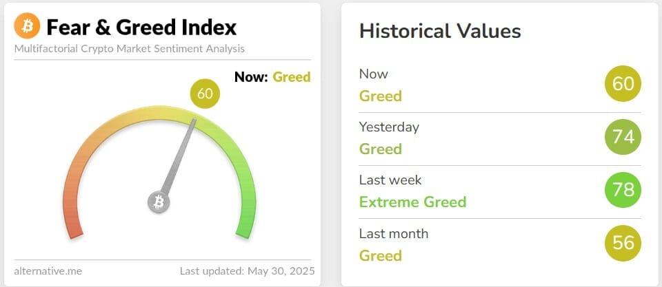 💜 Sentimiento de mercado: La avaricia se encuentra en 60 puntos.
