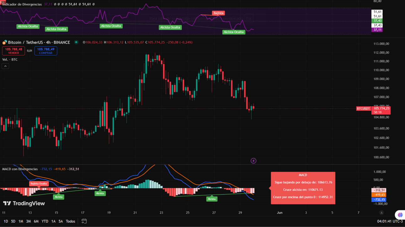 Después de varios días, Bitcoin parece haber roto el canal a la baja. Si hoy cerramos por debajo de este canal, podríamos confirmar la ruptura y una posible tendencia bajista, con objetivos en los 100.000 $ o incluso los 98.000 $. Este retroceso podría ofrecer el respiro necesario antes del próximo impulso alcista.