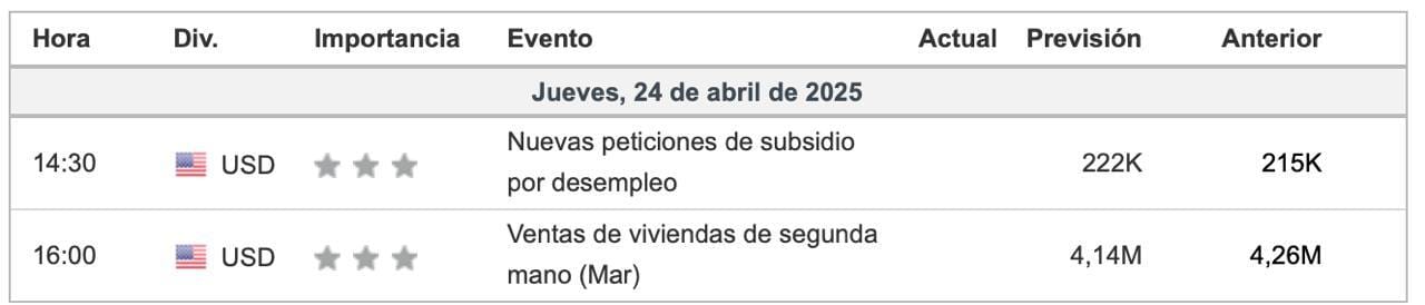 📅Calendario Económico de Investing: Hoy tenemos un par de noticias relevantes.