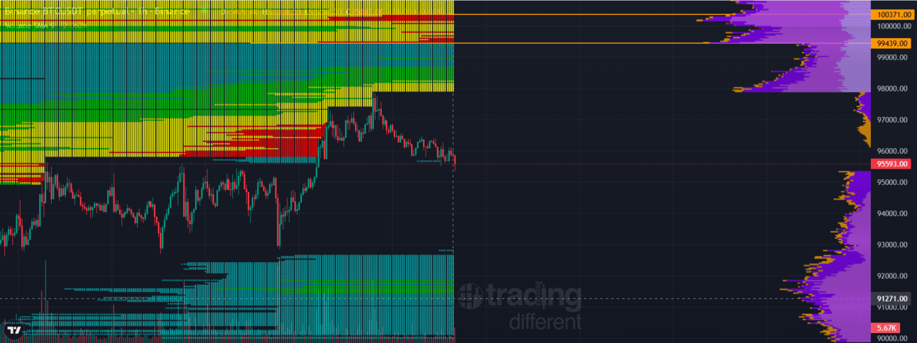 📈Mapa de Liquidaciones: En cuanto al mapa de liquidaciones, siguen creciendo las liquidaciones entre los 99.000 $ y los 100.000 $, confirmandonos aun mas nuestro proximo movimiento a mediano plazo, luego de que el precio tome algo de vuelo, por debajo seguimos sin liquidaciones que ameriten algun analisis.