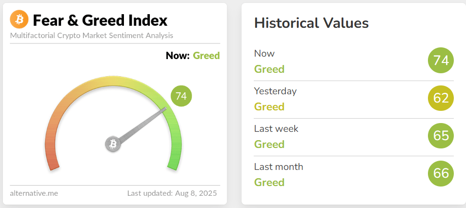 💜Miedo y codicia del mercado: 74 puntos (Avaricia)