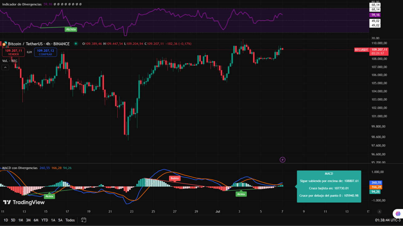 🔍 Atentos a superar los 109 574 $ para confirmar la tendencia
