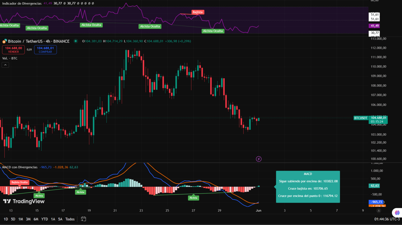 El soporte principal se sitúa en los 103.000 $, una zona que en el pasado logró contener el precio, por lo que podríamos ver una reacción similar.