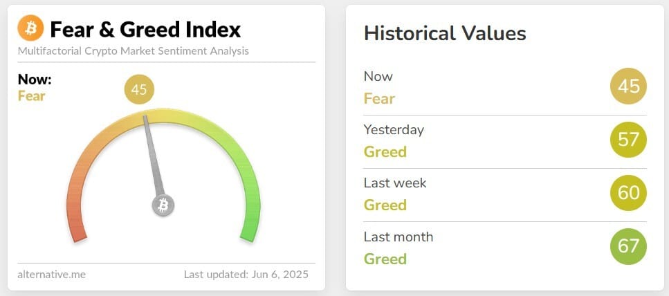 💜Miedo y codicia del mercado: 45puntos (Miedo)