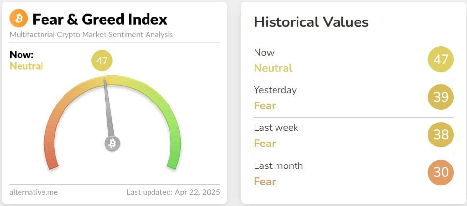 💜Miedo y codicia del mercado: 47 puntos (Neutral)